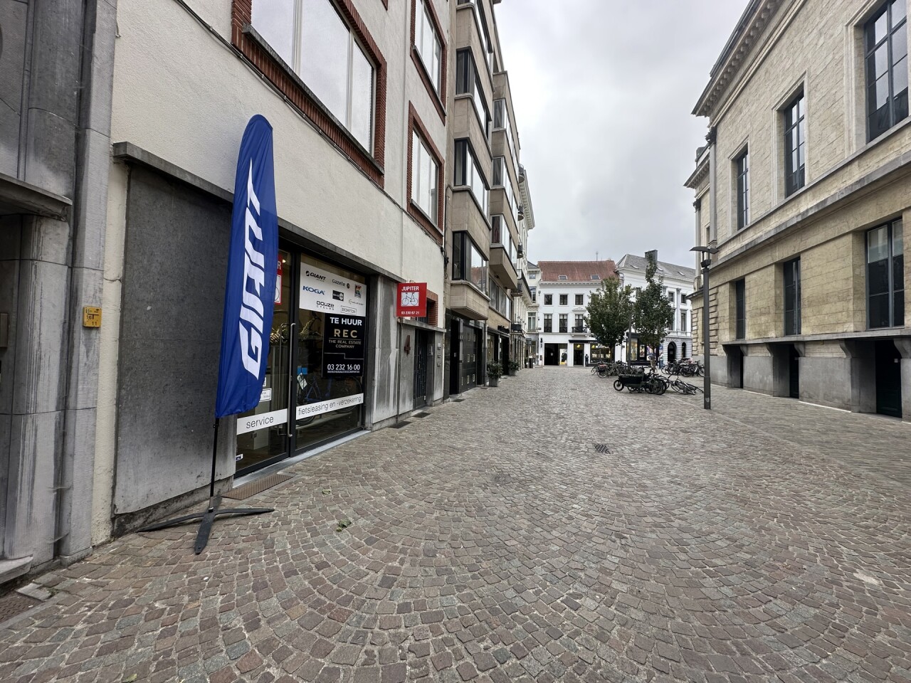 Instapklare handelsruimte op toplocatie aan de Graanmarkt, met grote etalage en uitstekende visibiliteit. Het pand (ca. 160 m²) combineert karakter en functionaliteit dankzij eiken parketvloeren, hoge plafonds (3,6 m), industriële verlichting en een stijlvolle toonbank. Achteraan bevinden zich drie paskamers, een stockageruimte en een kitchenette met berging.